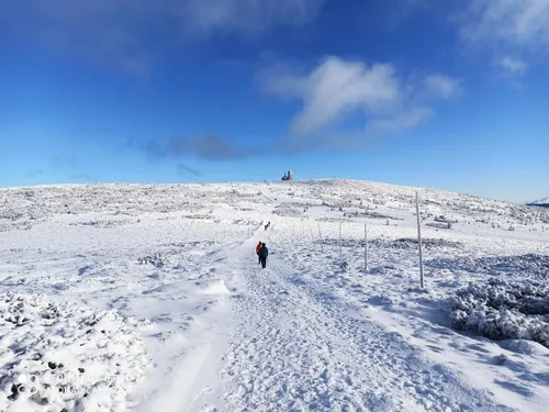 Śnieżne Kotły, located in the Karkonosze Mountains near Piechowice, Poland, are two glacial cirques renowned for their breathtaking landscapes and unique alpine flora. Towering rock walls rise approximately 100 meters, offering dramatic views and a sense of grandeur. It is a haven for hikers, with well-maintained trails leading to the viewpoint at Wysoki Kamień or passing through the Karkonosze National Park. The area is rich in biodiversity and geological significance, often blanketed in snow much of the year, adding to its mystical allure. Visitors can explore the remnants of a historical television transmission station. Remember to wear sturdy footwear, as the terrain can be challenging.