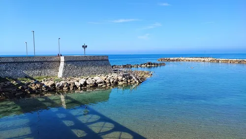 Spiaggia il Pirgo is a notable beach in Civitavecchia, known for its picturesque views and clear waters, making it ideal for photo-travelers. Located near the city's port, its proximity to the ancient Rocca (fortress) adds a historical backdrop to beach scenes. The beach is characterized by its dark sand and a long, wooden pier stretching into the sea, perfect for sunset or sunrise shots. The promenade is lined with palm trees and offers a variety of cafes and restaurants, allowing you to capture the local lifestyle. For a unique photographic opportunity, visit the nearby Terme Taurine, the ancient Roman baths, which provide a contrast of natural serenity and historical ruins. The area is less crowded during early mornings and late afternoons, offering tranquil moments for photography enthusiasts.