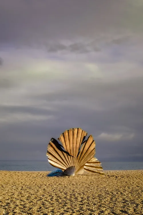 The Scallop at Aldeburgh Beach is a striking sculpture designed by Maggi Hambling in 2003. It is located on the pebbled beach in Aldeburgh, England, with stunning views of the North Sea. The sculpture is made of stainless steel and stands 4 meters tall and 3.5 meters wide. It represents a tribute to the composer Benjamin Britten, who spent much of his life in Aldeburgh. The words “I hear those voices that will not be drowned” are inscribed on the piece, referencing Britten's opera “Peter Grimes.” The area around the sculpture is perfect for a leisurely walk or picnic, while taking in the beautiful coastal views. It is a popular spot for photography, especially during sunset. However, visitors should be aware that the beach is not accessible at high tide, so plan accordingly to capture the perfect shot. During the summer months, the Scallop also hosts a range of events, including live music and outdoor performances.