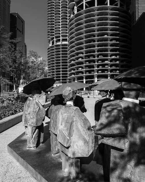 Tiny Happy Men is a small sculpture located in Tucson Park, in the Little Village Neighborhood of Chicago. Created by local Mexican-American artist Benito Huerta in 1995, the sculpture consists of four small aluminum figures, each representing an aspect of teamwork and community. It symbolizes the contributions of Mexican-American immigrants to the city of Chicago. Interestingly, the sculpture is often popularly referred to as “Wrestling Guys” due to the 'fighting' pose of the figures. The sculpture sits atop a concrete platform that features Aztec designs that Huerta included to represent the long history of Mexican culture in the region. The piece is a great example of public art found in the city, and offers a unique insight into the Mexican-American community.