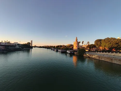 Torre del Oro, a stunning dodecagonal military watchtower, sits gracefully on the banks of the Guadalquivir River in Sevilla. Built in the 13th century by the Almohad Caliphate, it served as both a defensive barrier and a prison. Today, it houses a naval museum showcasing Sevilla's rich maritime history. Just a short stroll away lies the Puente de San Telmo, an elegant bridge connecting the neighborhoods of Los Remedios and El Arenal. Constructed in the 20th century, it offers spectacular views of the city’s riverside panoramas. Both landmarks are easily accessible and provide insight into Sevilla's historical and cultural fabric, perfect for a leisurely exploration.