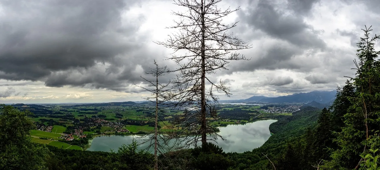 Vier-Seen-Blick, located in the town of Füssen in Germany, is a stunning outlook over the Allgäu Alps. It offers one of Germany's ultimate panoramas, including the four Vogelsee lakes and the Neuschwanstein and Hohenschwangau Castles. The area around Vier-Seen-Blick offers stunning scenery and picturesque walking paths. There are plenty of opportunities for photographers to take perfect landscape shots. The outlook also has a viewpoint with benches and a souvenir shop. It is a popular spot for visitors, tourists and locals alike.