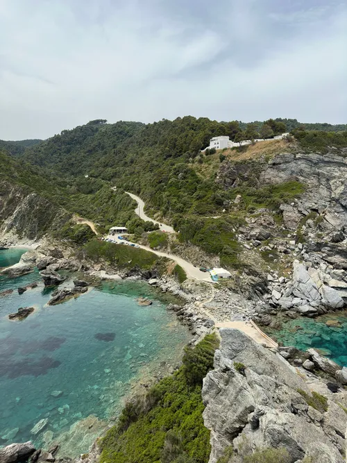 Famosa por su aparición en la película "Mamma Mia!", esta pintoresca cala cuenta con aguas turquesa cristalinas y una dramática formación rocosa coronada por una pequeña capilla. Los visitantes pueden subir cerca de 200 escalones hasta la encantadora capilla de San Juan, que ofrece vistas panorámicas del mar y los acantilados. El terreno rocoso brinda varios lugares para tomar el sol o zambullirse en las refrescantes aguas del Egeo, mientras que las tabernas cercanas sirven deliciosos platos locales. Se recomienda llegar temprano, ya que el estacionamiento es limitado, y llevar calzado adecuado para el empinado ascenso. Este icónico lugar promete serenidad y aventura, ideal para viajeros que buscan paisajes impresionantes y un toque de magia cinematográfica.