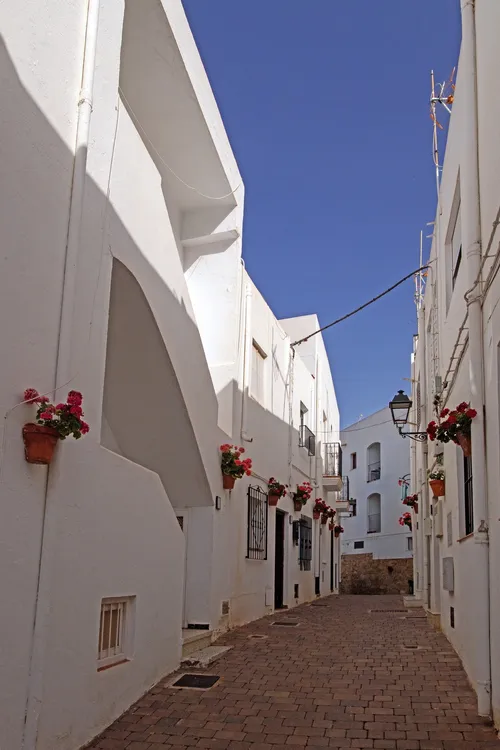 Calles de Mojácar es un laberinto de estrechas y sinuosas calles flanqueadas por casas encaladas en una ladera con vistas al Mediterráneo. Estos encantadores callejones te invitan a pasear junto a coloridas macetas, puertas de madera tradicionales y plazas escondidas llenas de vida local. Detente en pequeñas tiendas artesanas con cerámicas y artículos hechos a mano o disfruta de una bebida refrescante en un café con terraza. No te pierdas los miradores panorámicos que ofrecen amplias vistas de la costa y las montañas circundantes. Mientras exploras, observa la Iglesia de Santa María del siglo XVI y los restos de muralla que revelan el legado morisco de Mojácar.