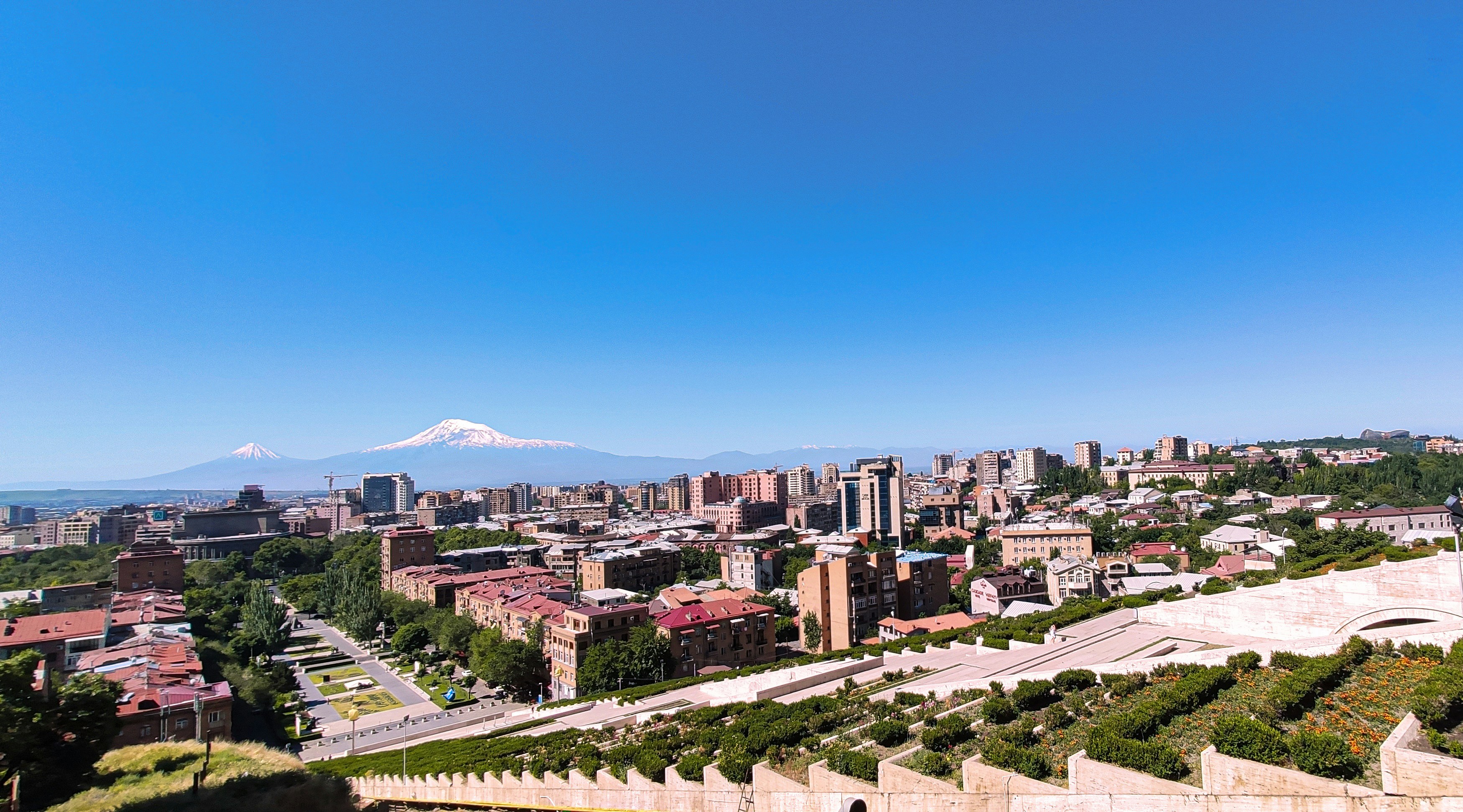 Un icónico conjunto de escalinatas de piedra caliza, instalaciones de arte moderno y vegetación exuberante que ofrece una impresionante vista del horizonte de Ereván. Los visitantes pueden subir escaleras o usar las mecánicas interiores para explorar terrazas escalonadas con esculturas, jardineras y miradores del monte Ararat. Construido en época soviética y transformado a principios de los 2000, alberga el Centro de Artes Cafesjian con exposiciones contemporáneas y eventos culturales. Por la noche, sus fuentes y escalinatas iluminadas crean un ambiente romántico ideal para paseos y fotografías, mientras cafés y restaurantes cercanos invitan a disfrutar de delicias armenias.