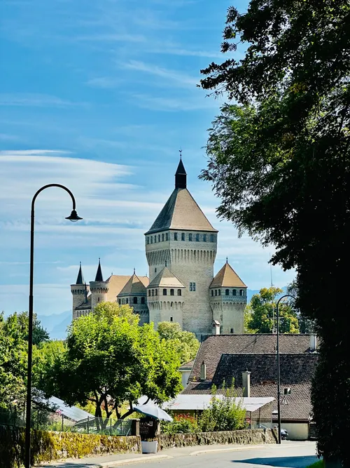 Una fortaleza impresionante del siglo XV, situada en una suave colina cerca de Morges, el Château de Vufflens destaca por sus imponentes torres de ladrillo rojo y es uno de los mejores ejemplos de arquitectura medieval en Suiza. Aunque es propiedad privada y no se puede visitar el interior, los visitantes pueden disfrutar de los viñedos, senderos escénicos y vistas dignas de postal alrededor de la finca. Su silueta es el fondo perfecto para fotos, especialmente junto a la región del Lago de Ginebra. Accesible en coche o tren, es ideal para una excursión de un día que sumerge a los viajeros en el encanto y la historia del campo suizo. No deje de explorar el pintoresco pueblo de Vufflens-le-Château para disfrutar de los sabores locales y la cálida hospitalidad.