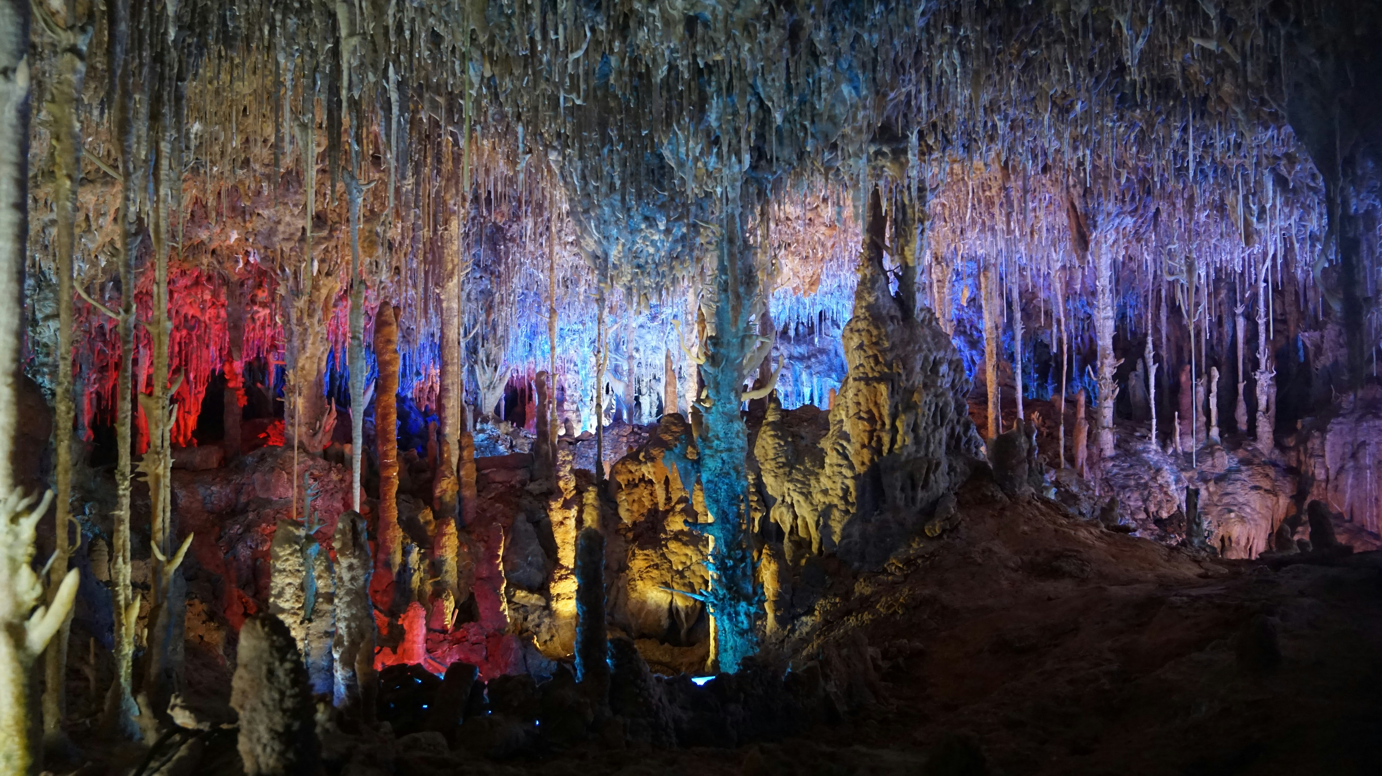 Famosas por sus estalactitas y estalagmitas, estas cuevas albergan uno de los lagos subterráneos más grandes de Europa. Explore cámaras abovedadas en tours guiados con formaciones rocosas únicas y disfrute de un breve concierto en vivo en el Lago Martel. Temperaturas suaves todo el año aseguran una visita cómoda en cualquier temporada. Guías de audio en varios idiomas ofrecen detalles interesantes sobre geología e historia. Se recomienda reservar con antelación en temporada alta, y la fotografía está permitida con algunas restricciones de flash. Las comodidades de Porto Cristo, que incluyen restaurantes y aparcamiento, lo convierten en una excursión ideal para un día.