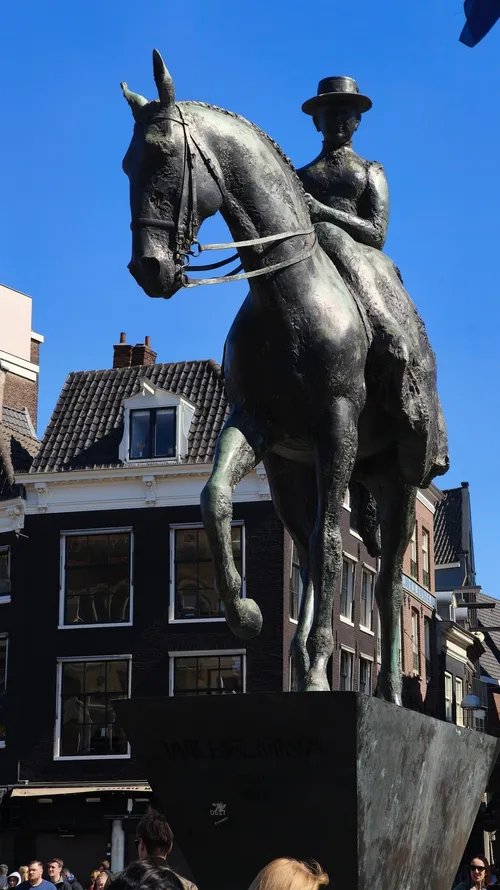 Revelada en 1972, esta estatua de bronce de Theresia van der Pant rinde homenaje a la querida reina Wilhelmina, monarca de los Países Bajos entre 1890 y 1948. Montada en su caballo, irradia confianza y una fuerte conexión con el pueblo holandés. Ubicada cerca del Rokin, su posición central la hace fácil de incluir en un recorrido a pie por atracciones cercanas como la Plaza Dam y el Palacio Real. Los fotógrafos aprecian el vibrante fondo urbano, mientras que los aficionados a la historia disfrutan reflexionando sobre el papel crucial de Wilhelmina en la formación de la identidad moderna de los Países Bajos. Es una parada rápida pero memorable para quienes exploran Ámsterdam.