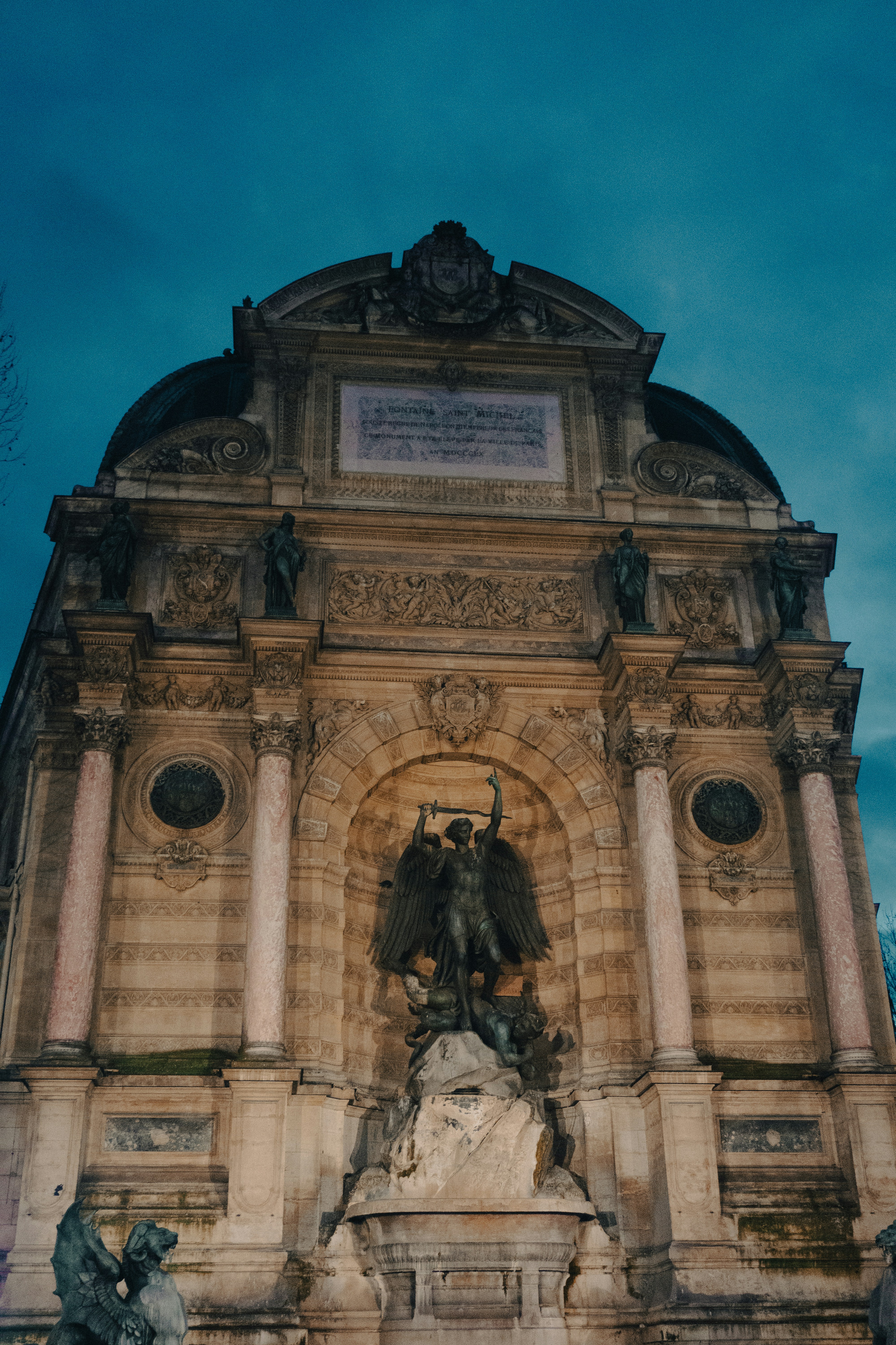 La Fontaine Saint-Michel, diseñada por Gabriel Davioud, es una fuente monumental situada en la Plaza Saint-Michel en el Barrio Latino de París. Fue inaugurada en 1860 y presenta una llamativa escultura de bronce del Arcángel Miguel venciendo a un dragón, obra de Francisque-Joseph Duret. Los viajeros aficionados a la fotografía deberían visitarla temprano en la mañana o al final de la tarde para capturar la suave luz dorada que realza las intrincadas tallas y esculturas. El área circundante ofrece numerosos puntos de vista, incluyendo vistas enmarcadas por bulevares arbolados y la arquitectura clásica parisina. Cerca, el río Sena y sus pintorescos puentes ofrecen oportunidades adicionales para la fotografía.