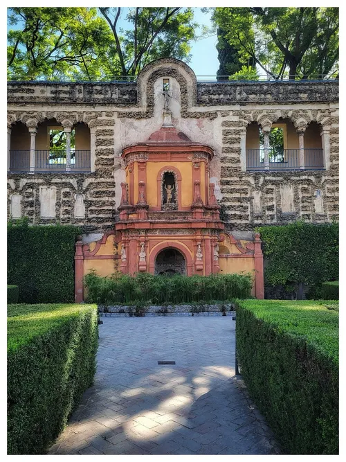 Ubicada en los exuberantes jardines del Real Alcázar, esta fuente de estilo barroco cuenta con una estatua de la Fama que anuncia triunfalmente el esplendor del palacio. Erigida en el siglo XVII, refleja la fusión de influencias moriscas, góticas y renacentistas del Alcázar, combinándose armoniosamente con arcos ornamentados y vibrantes paseos con azulejos. El suave murmullo de la fuente crea una atmósfera relajante en medio del bullicio del centro histórico de Sevilla. No pierdas la oportunidad de admirar sus intrincados relieves ni capturar los reflejos centelleantes del agua. Visitar temprano te ayudará a evitar las multitudes y a apreciar este tranquilo y fotogénico rincón del Alcázar.