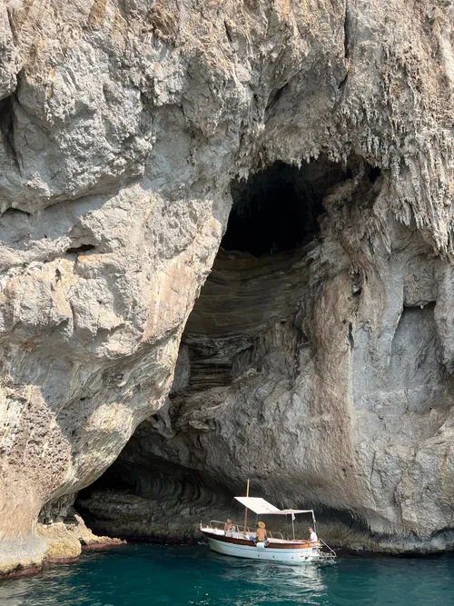 Rodeada por los dramáticos acantilados de Capri, cerca de la costa este de la isla, Grotta Bianca invita a los viajeros a explorar una luminosa maravilla caliza. Estalactitas blancas cuelgan de su bóveda, realzando el brillo etéreo de la cueva, especialmente cuando la luz del sol se filtra en su interior. El acceso suele implicar un recorrido en barco desde Marina Grande, a menudo combinado con visitas a otras grutas a lo largo de la costa de Capri. Las condiciones meteorológicas y el nivel del mar pueden afectar el acceso, por lo que se recomienda verificar con antelación. Prepara tu cámara para capturar formaciones rocosas únicas y reflejos brillantes. Aunque el recorrido es corto, la atmósfera tranquila, las paredes de roca pálida y el suave eco de las olas hacen de esta gruta un punto culminante inolvidable.