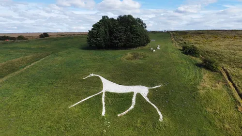 El Caballo Blanco de Hackpen, esculpido en 1838 para conmemorar la coronación de la Reina Victoria, es una figura de tiza en la colina situada en el borde norte de los Marlborough Downs en Wiltshire, Inglaterra. Ubicado cerca del pueblo de Broad Hinton, la figura se encuentra en Hackpen Hill, que ofrece impresionantes vistas de la campiña inglesa. El caballo mide 90 pies de largo y es fácilmente accesible, con un aparcamiento cercano y un sendero público justo al lado de la figura, lo que lo hace ideal para los entusiastas de la fotografía. Es mejor visitarlo a última hora de la tarde para obtener una iluminación óptima; el sitio proporciona un punto de vista único para capturar extensas panorámicas del paisaje verde. Si se visita en verano, las vibrantes flores silvestres acentúan las vistas pintorescas.