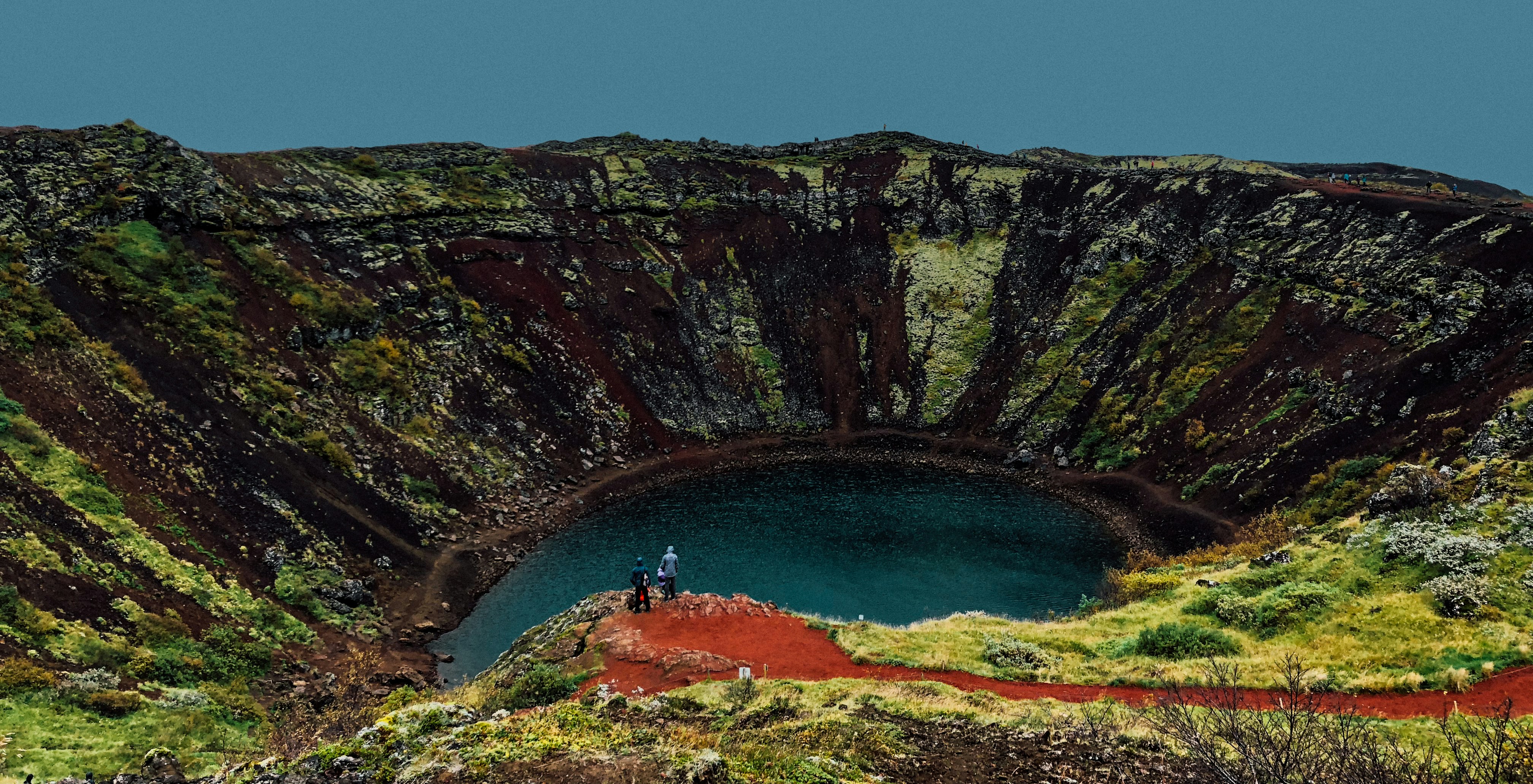 Kerið es un antiguo cráter volcánico ubicado en Klausturholar, Islandia. Es un destino turístico popular y un gran lugar para los fotógrafos. Está lleno de agua cristalina y rodeado de roca volcánica roja y hierba verde cubierta de musgo. Puedes caminar a lo largo del borde del cráter o hacer una caminata hasta el fondo. Una característica única de Kerið es su lago circular multicolor, que muestra tonos de azul, verde, tostado y negro. Esto se debe a los depósitos de ceniza volcánica de las antiguas erupciones. Tómese un descanso de su caminata y disfrute de las vistas de este cráter único en su tipo.