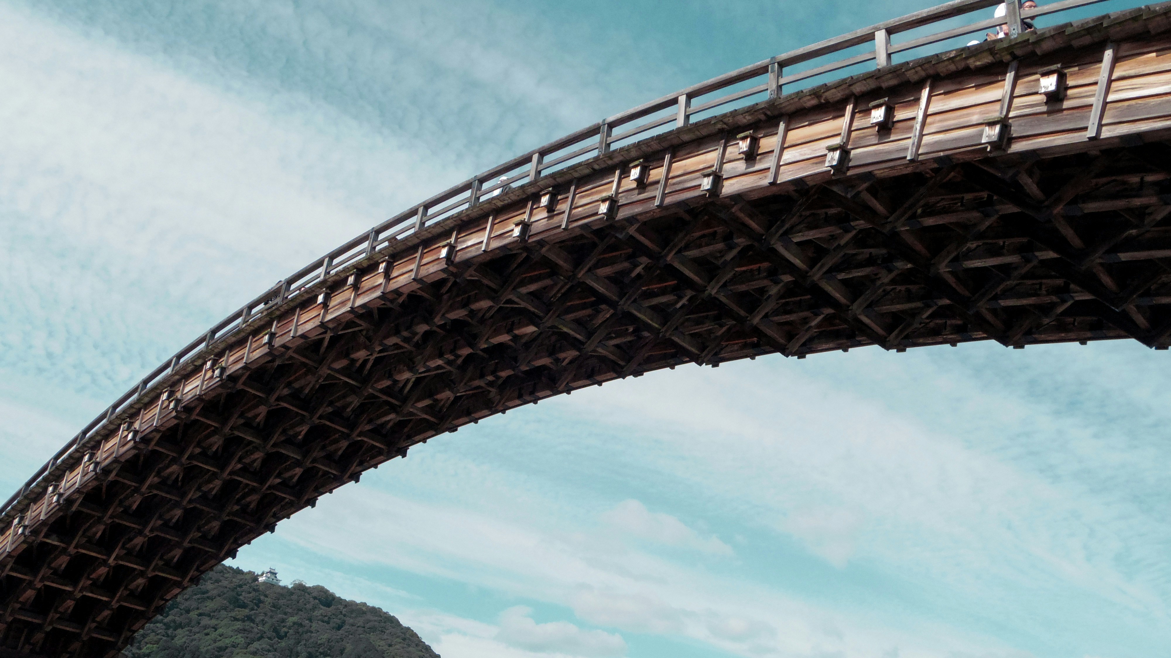 El puente Kintai es un puente de arco histórico en Iwakuni, Japón, que cruza el río Nishiki. Construido en 1673 por un señor feudal local para honrar a la delegación de Shogun Tokugawa, el puente Kintai es ampliamente reconocido como uno de los puentes más emblemáticos de Japón. Construido en madera y con un tamaño impresionante de 511 metros, está compuesto por cinco arcos entrelazados sostenidos por pilares de piedra azul en las orillas del río y es un espectáculo popular entre los visitantes y los lugareños por igual. En el lado este del puente se encuentra la puerta del puente Kintai, una impresionante estructura compuesta por frontones curvos cubiertos de azulejos que actúan como una imponente entrada a la ciudad del castillo. El puente también es un lugar favorito para los fotógrafos, gracias a su fondo sereno y pintoresco.