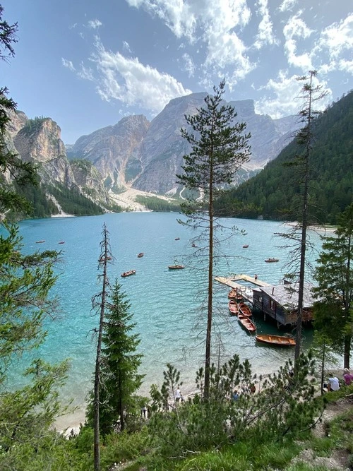 Lago di Braies es un impresionante lugar de belleza en la asombrosa cadena montañosa de los Dolomitas en el norte de Italia. Situado justo fuera del pueblo de Braies, el lago azul enmarcado por los imponentes picos de las montañas ofrece una vista impresionante. Entre las actividades populares aquí se incluyen el ciclismo de montaña, la escalada y nadar en el lago. Los carruajes tirados por caballos ofrecen un modo de transporte interesante para los visitantes. Cerca se encuentra el Parque Natural de Braies, un área protegida que alberga una variedad de vida silvestre de montaña y numerosos senderos para caminatas. Los visitantes también pueden tomar botes para explorar el paisaje circundante. Una visita a Lago di Braies ofrece una experiencia montañosa única, como en ningún otro lugar del mundo.