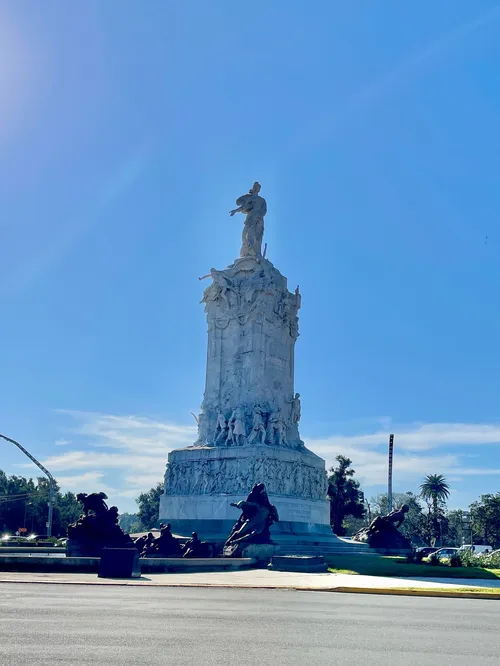 El Monumento de los Españoles, conocido oficialmente como Monumento a La Carta Magna y Las Cuatro Regiones Argentinas, se erige majestuoso en la intersección de la Avenida del Libertador y la Avenida Sarmiento en Buenos Aires. Esta impresionante estatua de mármol y bronce, donada por la comunidad española para celebrar el centenario de Argentina, presenta una figura central que representa a la República, flanqueada por figuras alegóricas que simbolizan las provincias argentinas. Las fuentes y los intrincados bajorrelieves del monumento ofrecen excelentes oportunidades para la fotografía dinámica. Captura la combinación de estilos neoclásico y art nouveau, especialmente durante la hora dorada cuando la luz natural realza su grandeza. El barrio circundante de Palermo proporciona parques frondosos y fondos escénicos adicionales.