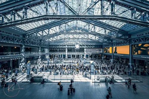 Ocupando el histórico edificio de la oficina de correos James A. Farley, el salón de trenes Moynihan cuenta con una enorme claraboya que baña de luz natural el amplio vestíbulo. Inaugurado en 2021 para aliviar la congestión en Penn Station, alberga servicios de Amtrak y LIRR con áreas de espera espaciosas, Wi-Fi gratuito y tableros de salidas convenientes. Las opciones gastronómicas van desde comidas rápidas hasta platos a la carta, mientras que las tiendas ofrecen artículos esenciales y recuerdos. Pasillos accesibles conectan sin esfuerzo con el metro y la estación principal, facilitando los traslados en Midtown Manhattan. Abierto 24/7, ofrece una alternativa más cómoda y arquitectónicamente impactante a la antigua Penn Station, asegurando llegadas y salidas más fluidas y placenteras para los visitantes.