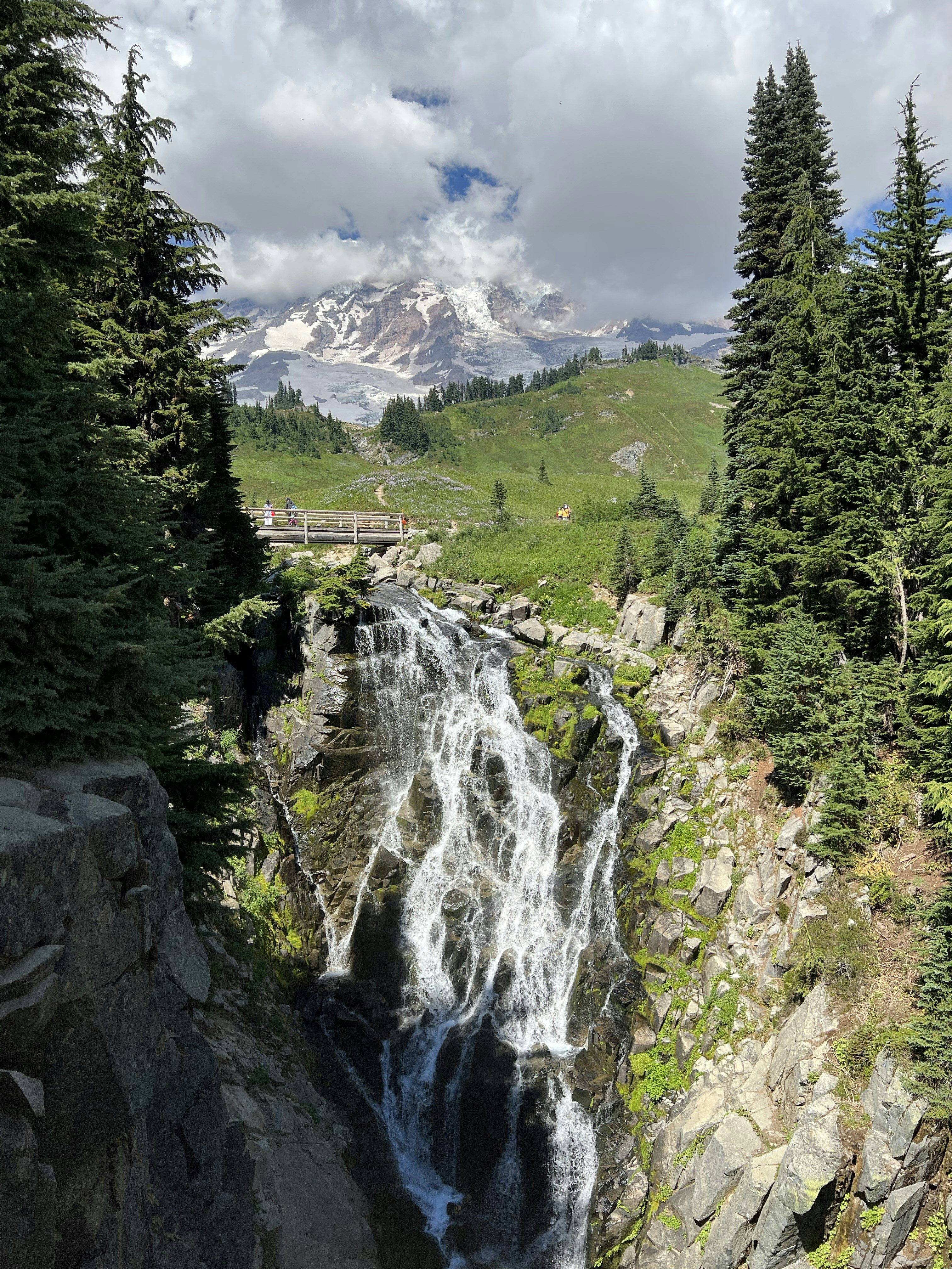 Las cataratas Myrtle, situadas en la pintoresca área de Paradise en el Parque Nacional del Monte Rainier, ofrecen una vista pintoresca que combina la grandeza del agua en cascada con la imponente presencia del Monte Rainier al fondo. Las cataratas tienen una caída de aproximadamente 22 metros y se puede acceder a ellas a través del sendero Skyline, conocido por su caminata relativamente fácil, adecuada para la mayoría de los visitantes. Es mejor visitarlas a finales del verano o principios del otoño, cuando las flores silvestres están en plena floración, proporcionando un contraste llamativo de colores contra el paisaje agreste. Las mañanas temprano o las tardes ofrecen condiciones de iluminación óptimas para la fotografía, con menos multitudes y un resplandor más suave que ilumina tanto las cataratas como la montaña. Esté atento a la diversa fauna alpina, que puede agregar un elemento dinámico a sus fotografías.