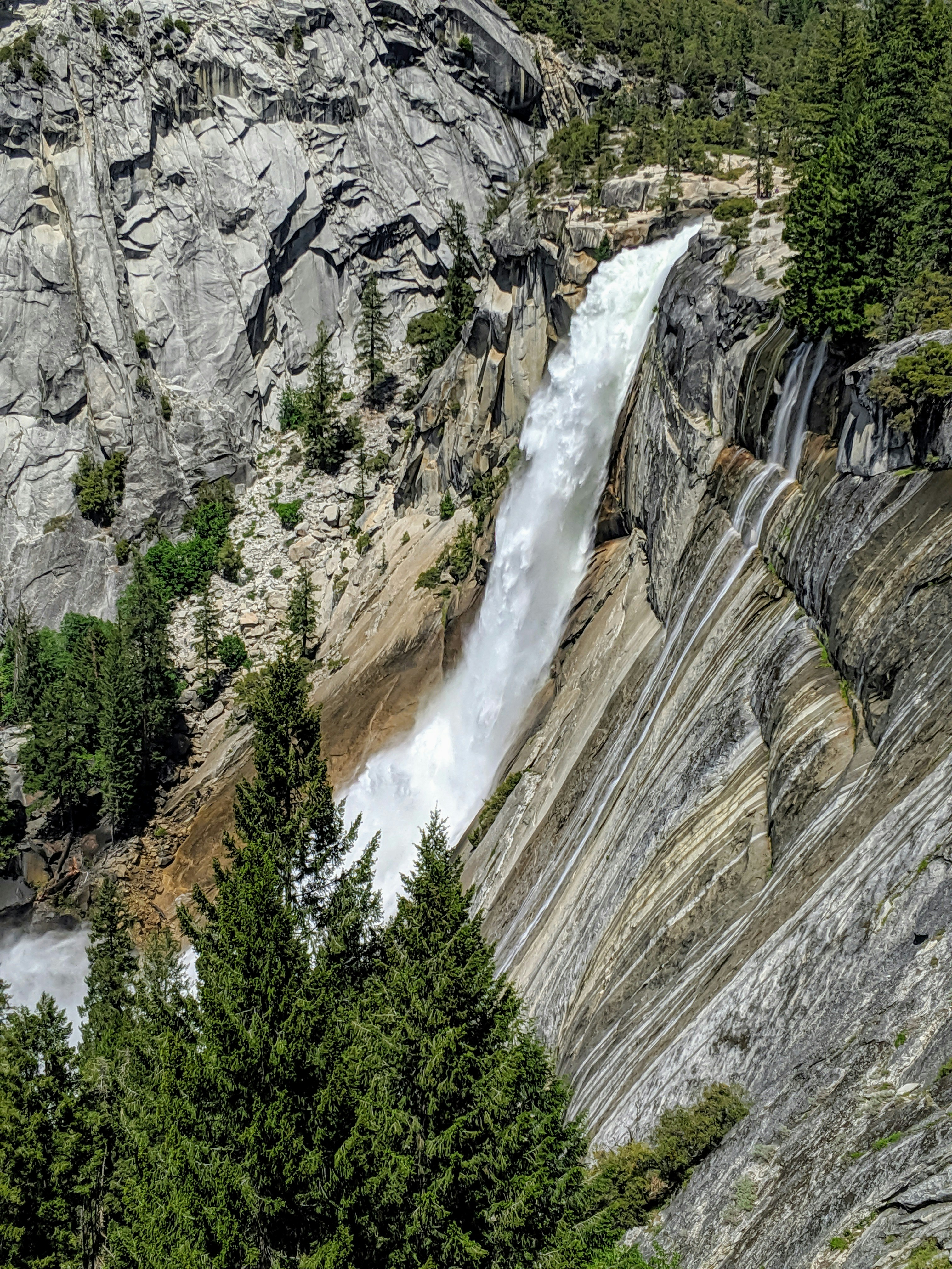 La Cascada Nevada en el Valle de Yosemite, California, es una de las atracciones más espectaculares entre las muchas cataratas de Yosemite. La cascada tiene una altura de 594 pies y está compuesta por dos secciones, con la sección superior cayendo sobre una cara de granito puro. Esta poderosa cascada vierte sus aguas en una amplia piscina en la base de la Cascada Vernal, que continúa fluyendo más adelante en el Valle de Yosemite. La Cascada Nevada es alimentada por el Río Merced y se disfruta mejor en primavera y otoño, cuando el agua está en su máximo flujo. Los excursionistas que buscan algo especial disfrutarán del Sendero de la Niebla, que serpentea alrededor de la base de la cascada, ofreciendo vistas de cerca y cascadas resbaladizas y mojadas. No debe pasarse por alto la importancia de una experiencia segura aquí, y los visitantes respetuosos querrán mantenerse en el camino y tener cuidado de no dañar el medio ambiente.