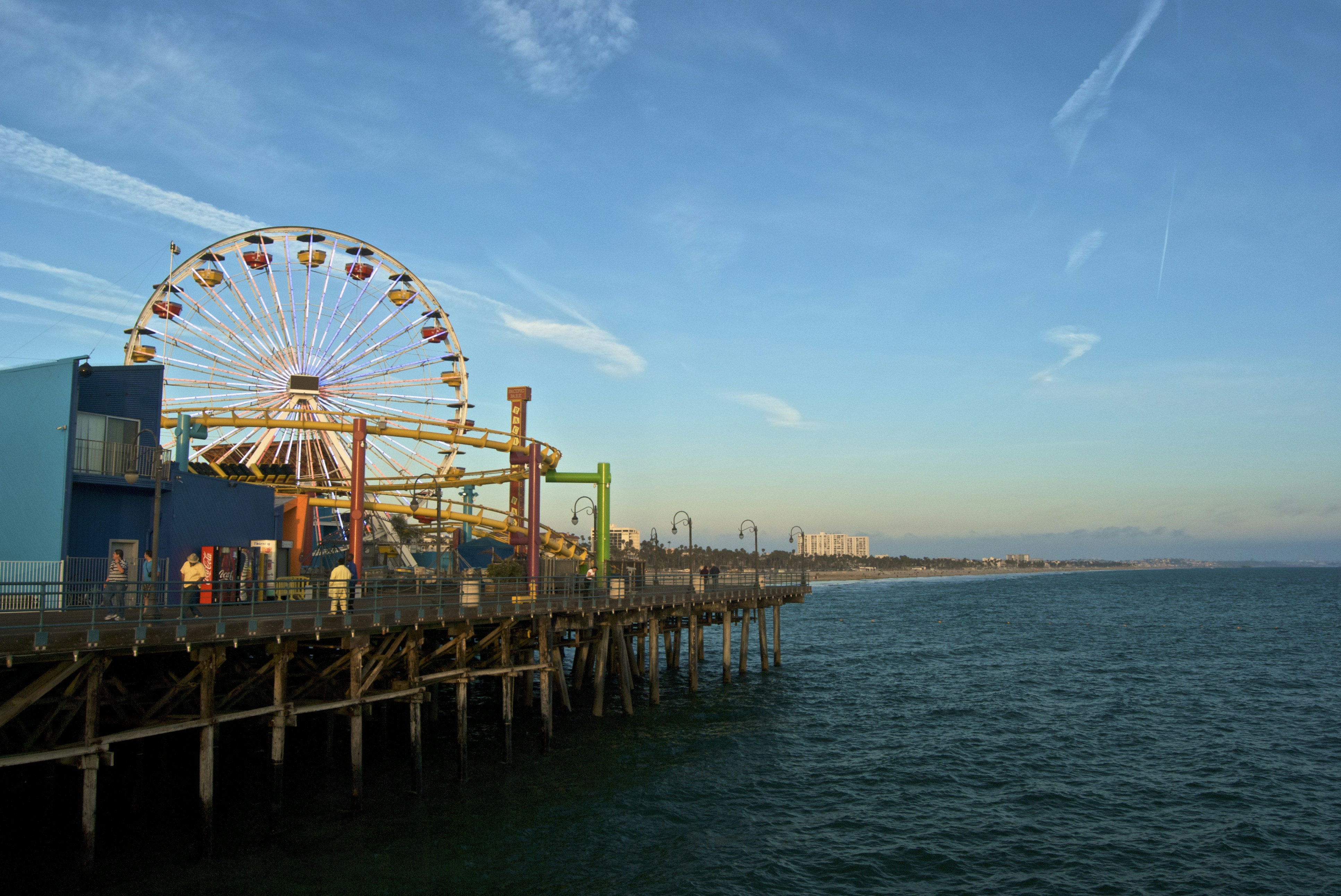 Pacific Wheel y Santa Monica Pier es una atracción turística popular ubicada en Santa Mónica, Estados Unidos. Es una combinación de una noria gigantesca y un muelle tradicional, que ofrece actividades divertidas y comodidades para todas las edades. La noria gigante es la única noria del mundo que funciona con energía solar y se encuentra entre las atracciones más altas de su tipo. En el muelle de Santa Mónica, podrá disfrutar de emocionantes atracciones, visitar tiendas y restaurantes interesantes y realizar paseos panorámicos por el muelle. El muelle también tiene una galería Playland y un carrusel histórico, uno de los pocos carruseles que quedan a lo largo de la costa de California. El muelle también ofrece magníficas vistas de las playas, la ciudad y el océano cercanos. Es un lugar popular para corredores y ciclistas que pueden andar o andar en bicicleta por la franja de 22 millas que conecta con otras playas costeras. El muelle está abierto durante todo el año y cuenta con espectáculos y actividades gratuitas para los visitantes.