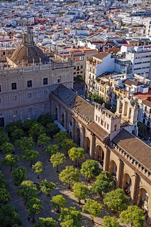 Ubicado dentro del complejo de la Catedral de Sevilla, el Patio de los Naranjos es un encantador corredor de naranjos fragantes, que sirvió históricamente como patio de abluciones. Construido en el sitio de una antigua mezquita, conserva su influencia morisca, evidenciada en las ornamentadas arcadas y el cuidadoso diseño del jardín. Hoy, los visitantes pueden descansar a la sombra de los árboles, admirar la antigua fuente central y disfrutar de la mezcla pintoresca de arquitectura gótica y mudéjar. El acceso suele incluirse en la entrada a la catedral; consulte los horarios y opciones de entrada actualizados, ya que pueden variar según servicios y eventos.