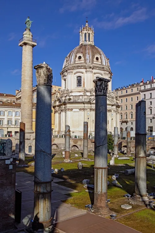 Piazza Foro Traiano es un complejo arqueológico en el centro de Roma. Está situado entre el Coliseo y el Foro Romano y fue creado originalmente por el emperador Trajano en el año 114 d.C. para conmemorar las conquistas del Imperio Romano. Está formado por un pequeño cuadrado elíptico, el Templo de Augusto, una base que construyó Trajano para acceder al Templo de Júpiter y un Foro Universal. Es uno de los sitios más pintorescos de Roma y vale la pena visitarlo mientras visita la Ciudad Eterna. Aquí puedes ver las esculturas de los emperadores de Roma, una gran cantidad de columnas distinguidas y un robusto obelisco en el centro creado por Trajano. La belleza del sitio se ve realzada por su magnífica iluminación que permite a los visitantes tomar hermosas fotografías en cualquier momento del día o de la noche.