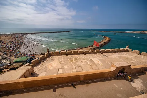 La zona alrededor de la Playa de Rabat está llena de historia, con la Kasbah de los Udayas cercana, un sitio Patrimonio de la Humanidad de la UNESCO conocido por su impresionante arquitectura morisca y sus estrechas calles azules. La playa es ideal para practicar surf, nadar o simplemente relajarse en sus arenas. Los visitantes también pueden disfrutar de la vibrante cultura local, con cafés que ofrecen té marroquí tradicional y aperitivos. La Playa de Rabat es una mezcla perfecta de belleza natural y riqueza cultural, lo que la convierte en una visita obligatoria en Rabat.
