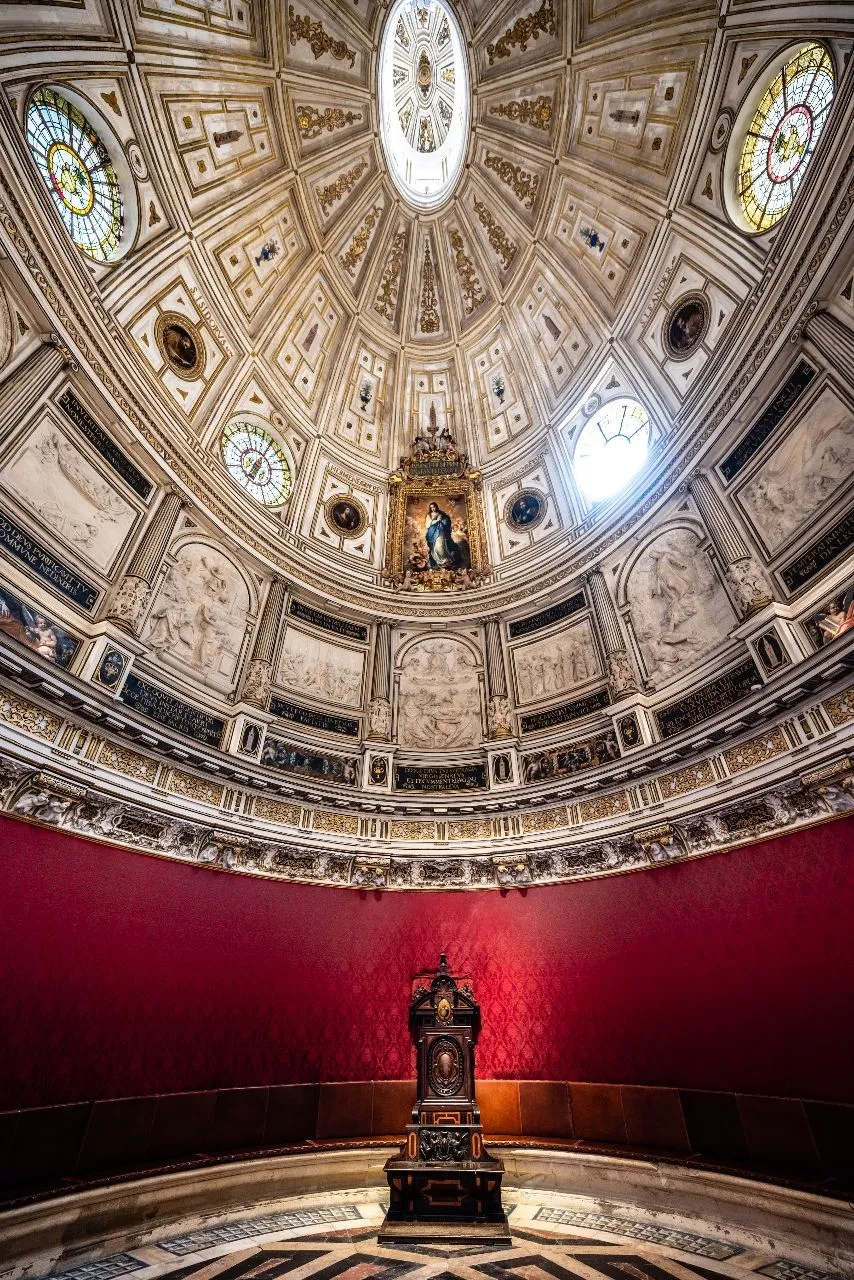 La Sala Capitular, conocida como Salón Principal, está ubicada en el Palacio de los Condes de Lebrija, un impresionante palacio renacentista del siglo XV en Sevilla, España. Este importante monumento está considerado como uno de los más bellos y finos ejemplos de la arquitectura sevillana. Cada rincón del palacio está lleno de preciosas obras de arte, mármoles y estucos, que embellecen el ambiente noble que prevalece en todo el palacio.