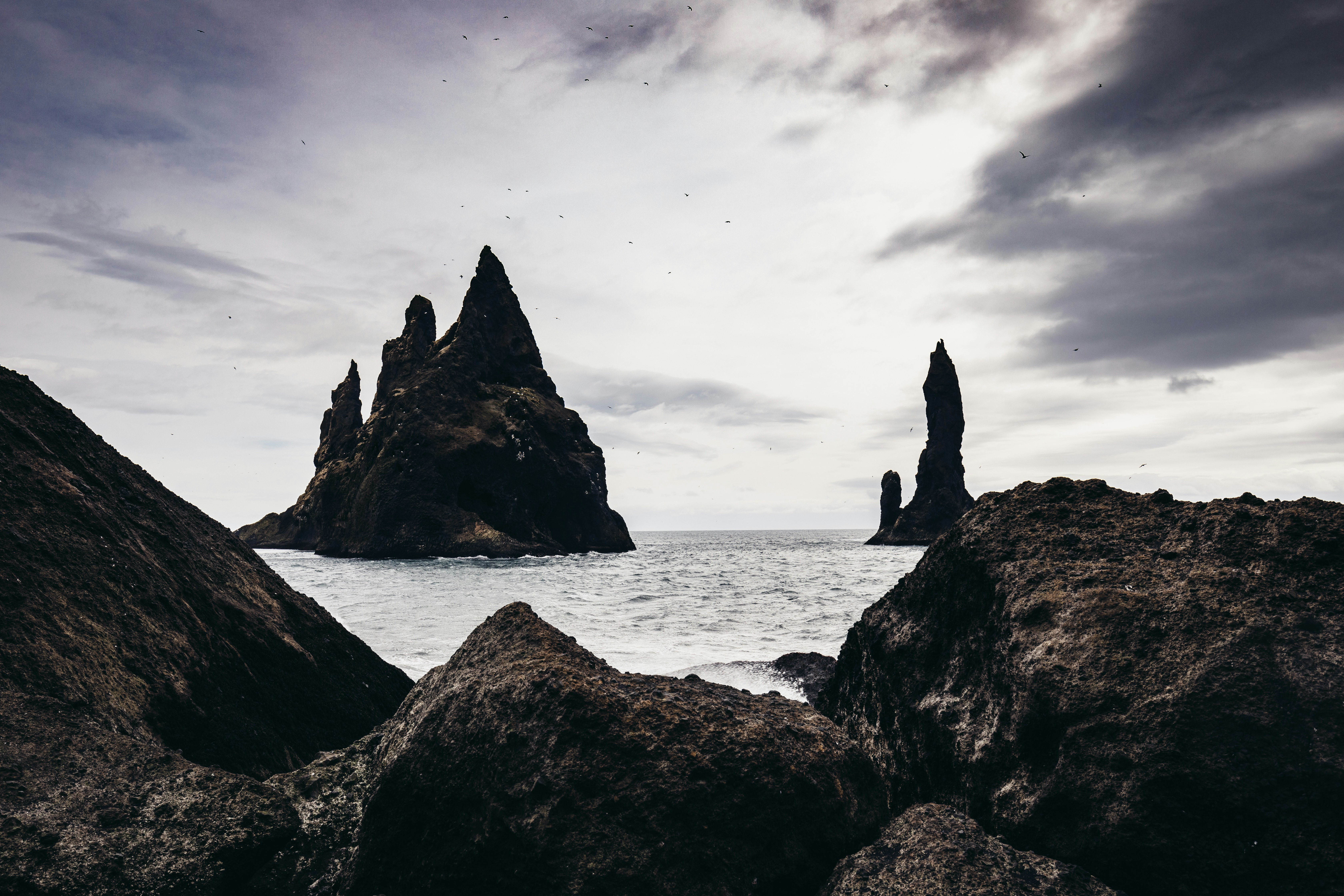 Sea Stack y Reynisfjara Beach son algunos de los lugares más emblemáticos e impresionantes de Islandia. Ubicado en la costa sur de Islandia, es un paisaje de espectaculares playas de arena negra y acantilados rocosos. Estas impresionantes vistas brindarán infinitas oportunidades para que los fotógrafos y los viajeros capturen fotografías impresionantes y experiencias verdaderamente inmersivas. Magníficas pilas de mar se elevan sobre la playa de arena negra y las olas rompiendo, creando imágenes espléndidamente resistentes para que todos las vean. Mientras tanto, la playa de Reynisfjara en sí es una formación única de arena volcánica y guijarros suaves donde puedes explorar una variedad inesperada y cautivadora de texturas. El oleaje y, a menudo, el clima salvaje y dramático brindan vistas impresionantes y fantásticas oportunidades para tomar fotografías.