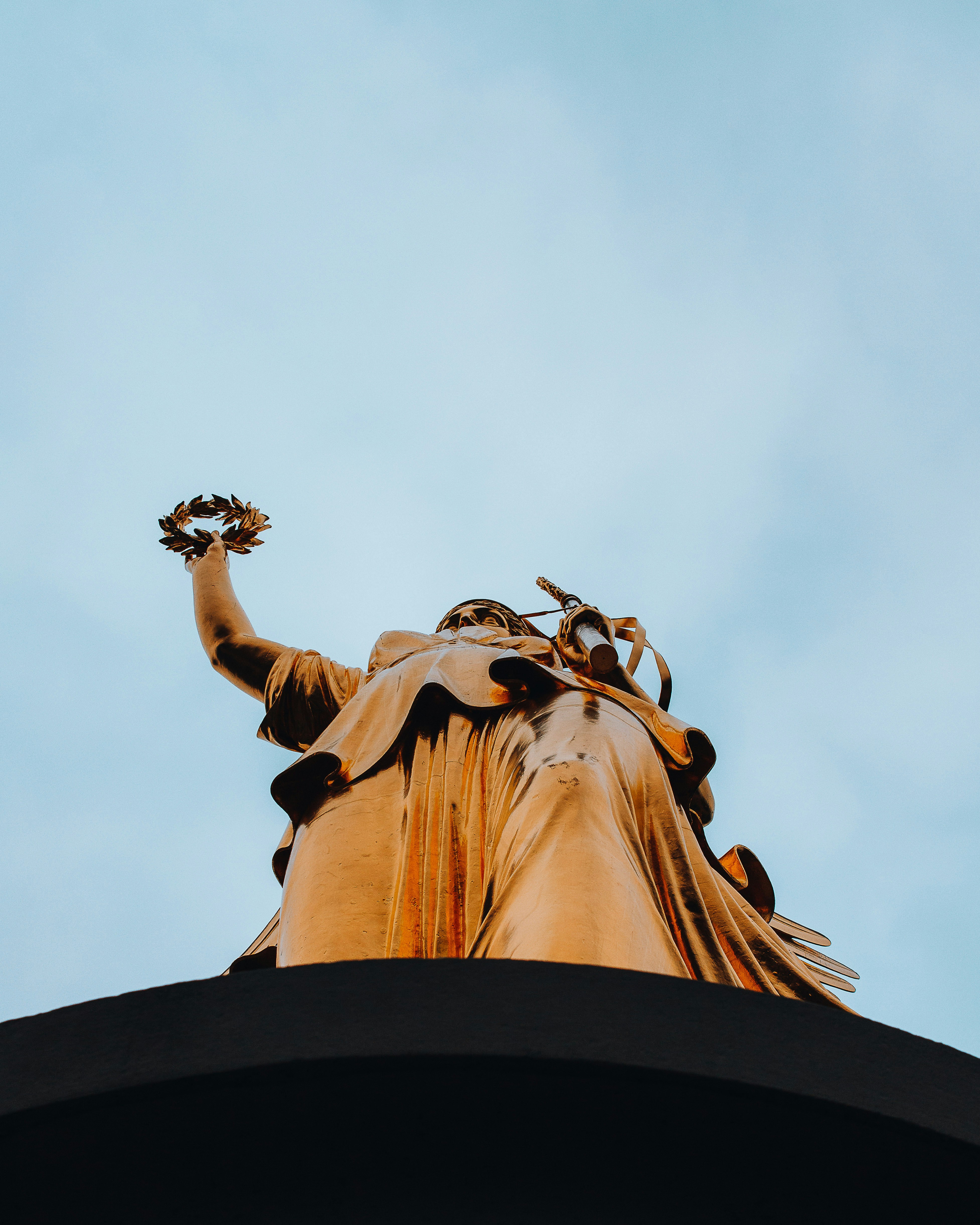 La Siegessäule, o Columna de la Victoria, es un símbolo icónico de Berlín, Alemania, que ofrece a los fotógrafos una combinación única de historia y vistas panorámicas. La columna se encuentra a 67 metros de altura en una rotonda del parque Tiergarten, coronada por una estatua dorada de Victoria, la diosa romana de la victoria. Para los entusiastas de la fotografía, capturar los intrincados relieves que decoran la columna, que representan las victorias militares prusianas, puede resultar muy gratificante, especialmente a la luz de la hora dorada. La verdadera joya, sin embargo, está en subir los 285 escalones hasta la plataforma de observación. Desde aquí tendrá vistas panorámicas del horizonte de Berlín, incluida la Puerta de Brandenburgo y el Reichstag. La yuxtaposición de la columna con el Berlín moderno ofrece una gama dinámica de oportunidades fotográficas, desde primeros planos detallados hasta amplios paisajes urbanos. Las primeras horas de la mañana o las últimas horas de la tarde son ideales para disfrutar de una luz más suave y menos aglomeraciones.