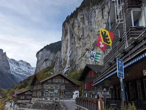 La cascada Staubbachfall es una cascada de 297 m (975 pies) de altura ubicada en Lauterbrunnen, Suiza. A menudo se la llama la cascada más hermosa de los Alpes suizos y es una de las principales atracciones del valle de Lauterbrunnen, un lugar popular tanto para excursionistas como para fotógrafos. La cascada cae por la ladera de un alto acantilado y tiene varios niveles que se pueden ver desde el valle y la popular plataforma de observación en su base. La plataforma de observación al pie de la cascada permite conocer de cerca el agua y tomar fotografías realmente sorprendentes. Es una caminata bastante fácil desde la cercana estación del valle, pero asegúrese de llevar calzado adecuado. Es un espectáculo verdaderamente extraordinario, especialmente durante los meses de verano, cuando el agua está en su máximo nivel.