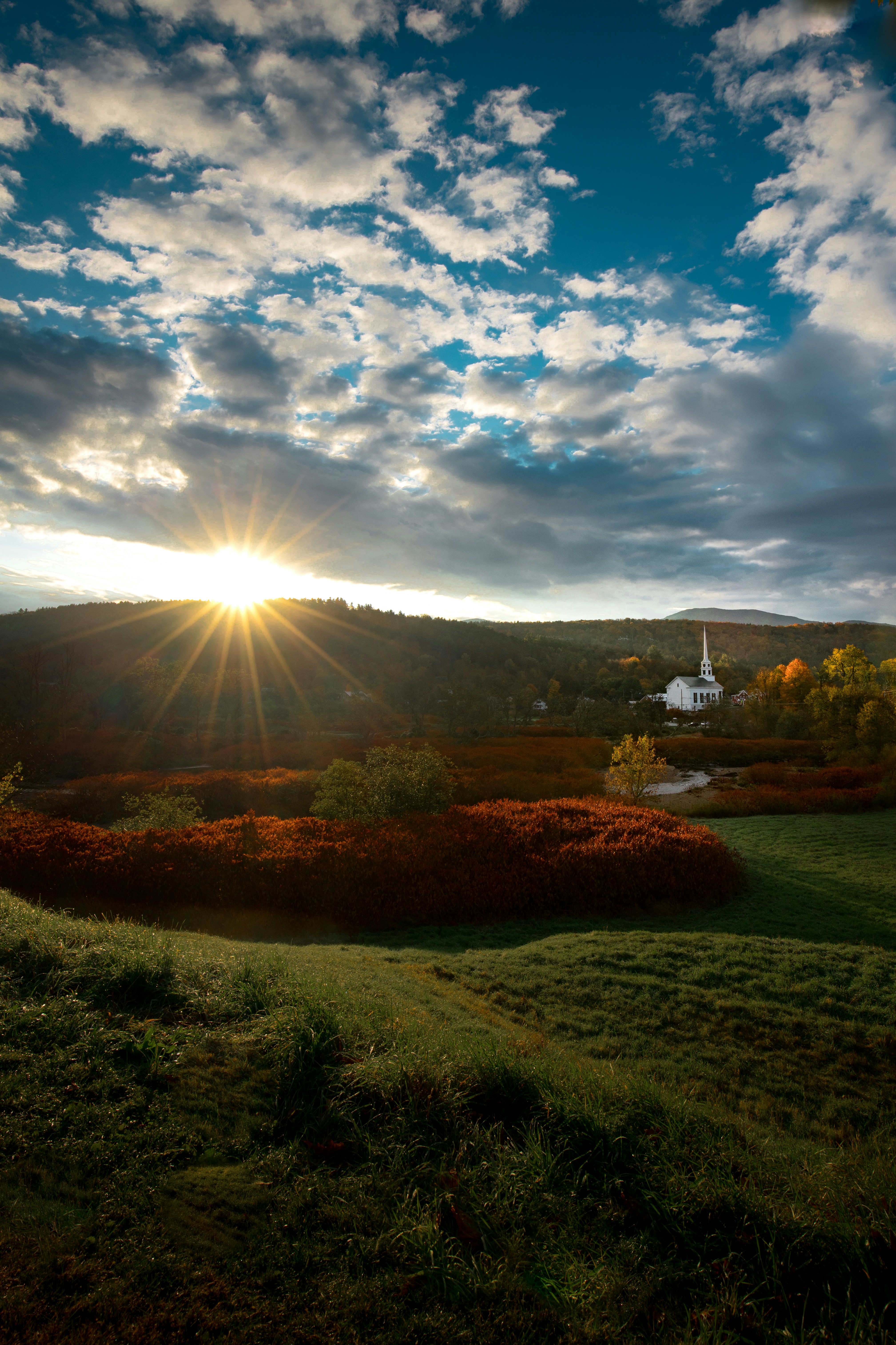 Stowe Community Church es un hito icónico en Stowe, Vermont, amado por los viajeros fotográficos por su impresionante encanto de Nueva Inglaterra. La iglesia, con su agudo campanario y su arquitectura clásica, se destaca contra el telón de fondo de las Montañas Verdes, ofreciendo una escena por excelencia de Vermont. Ideal para fotografías, la iglesia es especialmente pintoresca durante el otoño, cuando el paisaje circundante arde con un follaje vibrante. El invierno aporta un toque mágico, con la iglesia y sus alrededores cubiertos por un manto de nieve, resaltando su serena belleza. El amanecer y el atardecer ofrecen la mejor iluminación natural para capturar la iglesia, con el tono dorado acentuando sus características. Los visitantes también deben explorar la parte trasera y los lados de la iglesia, donde ángulos menos obvios pueden proporcionar composiciones únicas y convincentes. No se pierda el interior si está abierto; los bancos clásicos y los vitrales añaden una dimensión espiritual a su colección de fotografías.