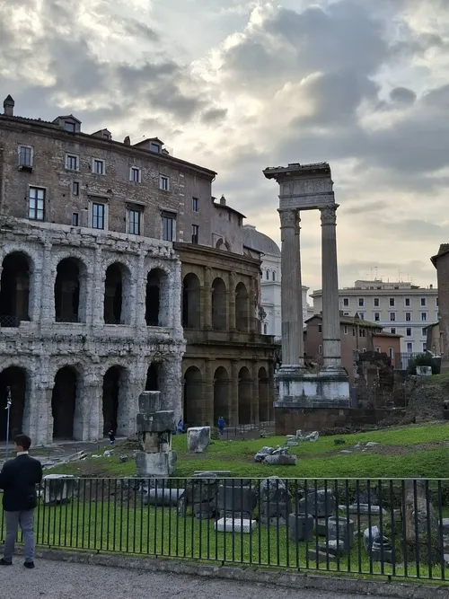 Los Templos de Apolo Sosiano y Bellona, situados cerca del Teatro de Marcelo en Roma, ofrecen perspectivas fascinantes para los entusiastas de la fotografía interesados en capturar las capas arquitectónicas antiguas de Roma. Apolo Sosiano, reconstruido a finales del siglo I a.C., exhibe una mezcla de columnas corintias y fragmentos de esculturas decorativas, revelando la fusión artística de los estilos helenístico y romano. Adyacente se encuentra el Templo de Bellona, menos conspicuo pero que ofrece un contraste visual con sus restos de cimientos. Enfóquese en el telón de fondo de la Roma moderna que se mezcla con las ruinas antiguas, especialmente durante la hora dorada cuando el juego de luces ilumina los elaborados grabados y colores de las estructuras.