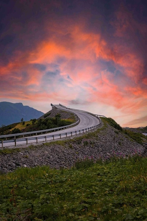 La Carretera del Atlántico es un tramo imperdible de 8.3 kilómetros (5.2 millas) que se extiende a través de múltiples puentes y viaductos en el municipio de Averøy. Conectando la isla de Averøy con el continente, las impresionantes vistas al océano de la carretera, sus paisajes dramáticos y giros intrépidos le han otorgado el puesto más alto entre los trayectos más pintorescos del mundo. Recorrer la carretera te brindará vistas de la escarpada costa, hermosos pueblos pesqueros y pequeños islotes marinos, majestuosas montañas en la distancia, y aguas cristalinas rompiendo contra las rocosas orillas. Con tanto para ver y explorar a lo largo de la carretera, no es de extrañar que la Carretera del Atlántico sea un destino popular tanto para viajeros como para fotógrafos.