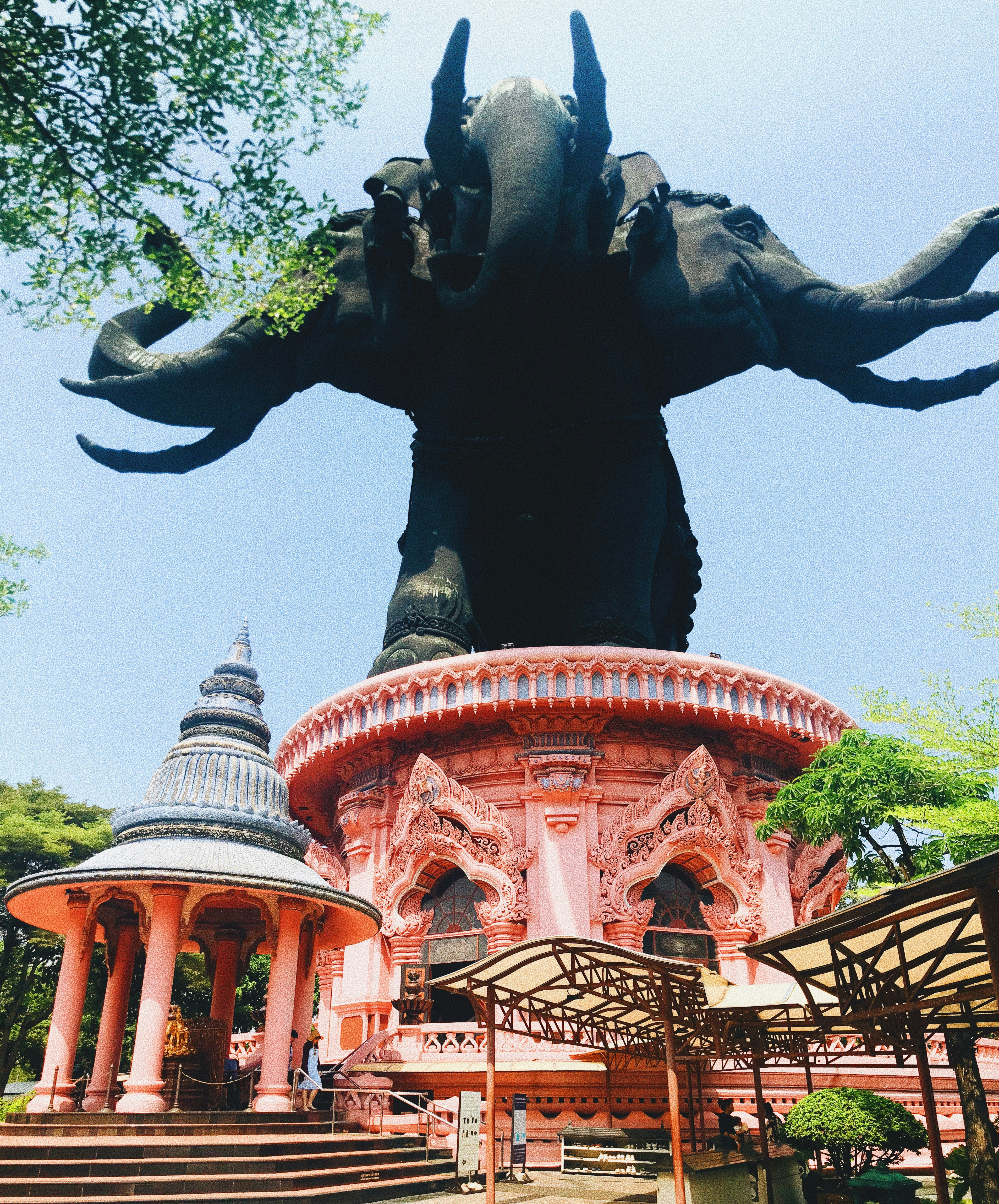 El Museo Erawan, ubicado en Bang Mueang Mai, Samut Prakan, Tailandia, es una maravilla arquitectónica y un festín visual para los fotoviajeros. La característica más destacada del museo es su escultura artística de elefante gigante de tres cabezas, una notable representación de Airavata, un elefante blanco mitológico de la tradición hindú. Esta colosal estatua, hecha de bronce, se alza a una impresionante altura de 29 metros y está montada sobre un pedestal igualmente imponente, lo que hace que la estructura total alcance los 43 metros de altura.