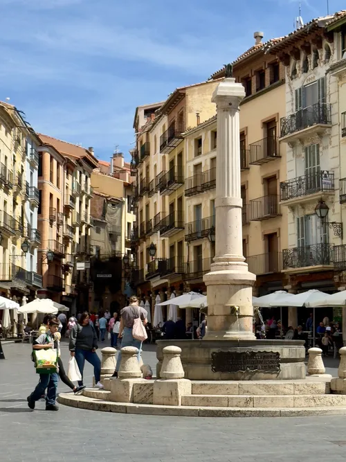 La Fuente del Torico, situada en plena Plaza del Torico de Teruel, data de mediados del siglo XIX y es un símbolo de la ciudad. La característica central es un pequeño toro de bronce (tórico) encaramado sobre una columna central, rodeado por una pila circular. El toro en sí es inesperadamente pequeño, lo que convierte a la fuente en un tema intrigante para composiciones creativas. Los visitantes nocturnos encontrarán la plaza bellamente iluminada, lo que brindará excelentes oportunidades para tomar fotografías después del atardecer. La arquitectura medieval circundante y las torres mudéjares añaden un rico telón de fondo histórico, realzando el atractivo visual. Los eventos culturales frecuentes y las reuniones locales pueden producir tomas dinámicas y animadas.