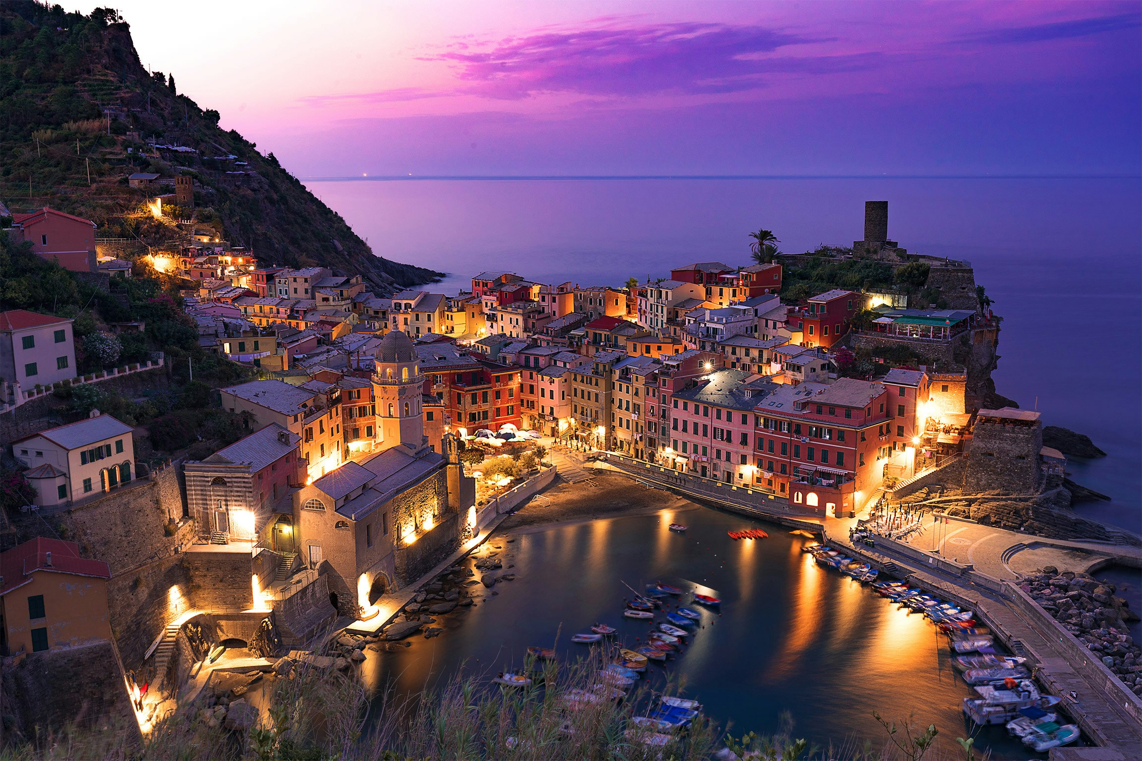 Vernazza es uno de los cinco pueblos de la Riviera italiana que forman el sitio del Patrimonio Mundial de la UNESCO de Cinque Terre. Es un pintoresco pueblo de pescadores escondido en una pequeña bahía a lo largo de la espectacular costa italiana. Vernazza tiene un laberinto de calles estrechas bordeadas de coloridos edificios y barcos pintados que bordean el puerto deportivo. Es un lugar popular para los viajeros que buscan relajarse y disfrutar de las vistas. Los visitantes pueden obtener una vista increíble del pueblo desde el famoso mirador en la parte superior del camino que conduce a la Iglesia de Santa Margherita di Antiochia. También hay algunas rutas de senderismo increíbles en la zona para explorar. Desde Vernazza, es fácil llegar a los pueblos cercanos en tren o en ferry. Una visita a Vernazza es el lugar perfecto para tomar fotos pintorescas de la costa más hermosa de Italia y experimentar la vida en un típico pueblo italiano.