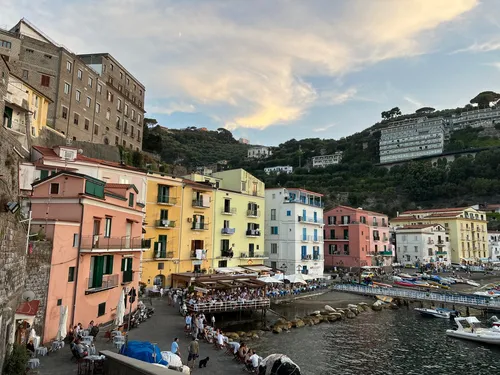 Via Marina Grande es una encantadora avenida frente al mar en Sorrento que conduce a una antigua villa de pescadores llena de color local. Con animados restaurantes de mariscos, podrás degustar platos recién capturados mientras disfrutas de vistas costeras y el relajante sonido de las olas. A pocos pasos del bullicioso centro, esta zona mantiene un ambiente relajado, con coloridos barcos balanceándose en el agua y artesanos locales vendiendo recuerdos hechos a mano. Pasa el día tomando el sol en un pequeño club de playa o explorando callejuelas, y concluye admirando un atardecer impresionante sobre el Golfo de Nápoles.