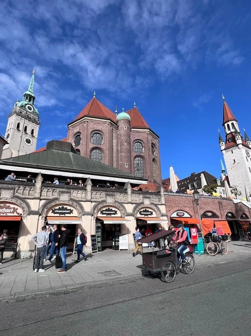 El Mercado de Víveres en Múnich, Alemania, se encuentra en la plaza Viktualienmarkt de la ciudad. Es uno de los mercados más antiguos de la ciudad y uno de los seis mercados diarios de Múnich. Es un lugar estupendo para explorar productos tradicionales como carnes frescas, quesos, flores, frutas y verduras. Los visitantes vienen de cerca y de lejos para descubrir las muchas delicias bávaras tradicionales que llenan los puestos. Los visitantes también pueden encontrar excelentes recuerdos como postales, artículos de cuero, antigüedades y baratijas. También hay un jardín de cerveza que ofrece una variedad de cervezas alemanas. La plaza Viktualienmarkt también alberga numerosos festivales y eventos especiales a lo largo del año. Es un lugar increíble para explorar las vistas y sonidos de la cultura bávara tradicional.
