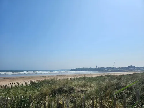 Arena dorada expansiva se extiende a lo largo de la pintoresca costa de St Andrews, ofreciendo amplio espacio para pasear, hacer picnic y correr al estilo de la icónica escena inicial de "Chariots of Fire". Suaves dunas flanquean la orilla, resguardando aves marinas y ofreciendo excelentes puntos de vista para admirar las impresionantes vistas del Mar del Norte. Las cercanas atracciones históricas, como las ruinas medievales de la Catedral de St Andrews y los mundialmente famosos campos de golf, añaden un atractivo cultural a un día de playa. Instalaciones como un práctico aparcamiento y el fácil acceso peatonal desde la ciudad facilitan la visita. Las primeras horas revelan tranquilos amaneceres, mientras que las tardes invitan a paseos serenos por una de las joyas costeras más queridas de Escocia.