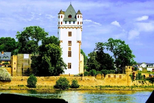 Le Burg Eltville est un magnifique château médiéval situé dans la ville d'Eltville am Rhein en Allemagne. Construit au XIIIe siècle, il est considéré comme l'une des forteresses les mieux préservées du Moyen Âge dans la région de Hesse. Le domaine du château comprend de nombreux autres bâtiments tels qu'une chapelle, des écuries, une maison de cavalerie et la Rheinhalle. Il fut la résidence des comtes d'Eltville jusqu'en 1693, date à laquelle le dernier résident est décédé. Aujourd'hui, le château est ouvert au public et propose des visites guidées, des expositions d'art et d'histoire, des concerts et des activités pour enfants. Son trait le plus reconnaissable est le pont-levis et les tours crénelées, qui ajoutent une grandeur à la vue. Les jardins environnants sont également bien entretenus et possèdent une beauté classique distincte. La ville d'Eltville am Rhein a son propre charme unique, avec ses rues pavées sinueuses, ses maisons à l'ancienne, une variété de restaurants et de cafés, et un marché animé. Le Burg Eltville est une destination idéale pour tous ceux qui souhaitent explorer l'Allemagne médiévale et le romantique Rheinland.