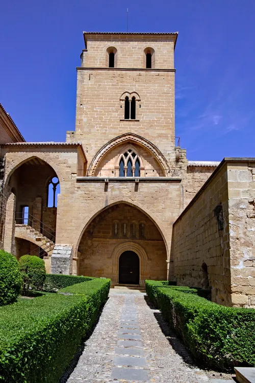 Le Château de Calatrava, à Alcañiz, en Espagne, est une forteresse médiévale bien préservée construite par l'Ordre de Calatrava au 12ème siècle. Il est perché sur une colline, offrant des vues panoramiques sur la campagne environnante de l'Aragon, ce qui en fait un emplacement idéal pour la photographie de paysages grand angle, surtout au coucher ou au lever du soleil. L'architecture romane et gothique du château offre des œuvres en pierre complexes et des intérieurs atmosphériques, parfaits pour photographier des détails comme les arcs et les plafonds voûtés. Ne manquez pas les motifs de la croix de Calatrava et les fresques dans l'église du château. Pour un éclairage optimal, l'heure dorée en début de matinée ou en fin d'après-midi est idéale.