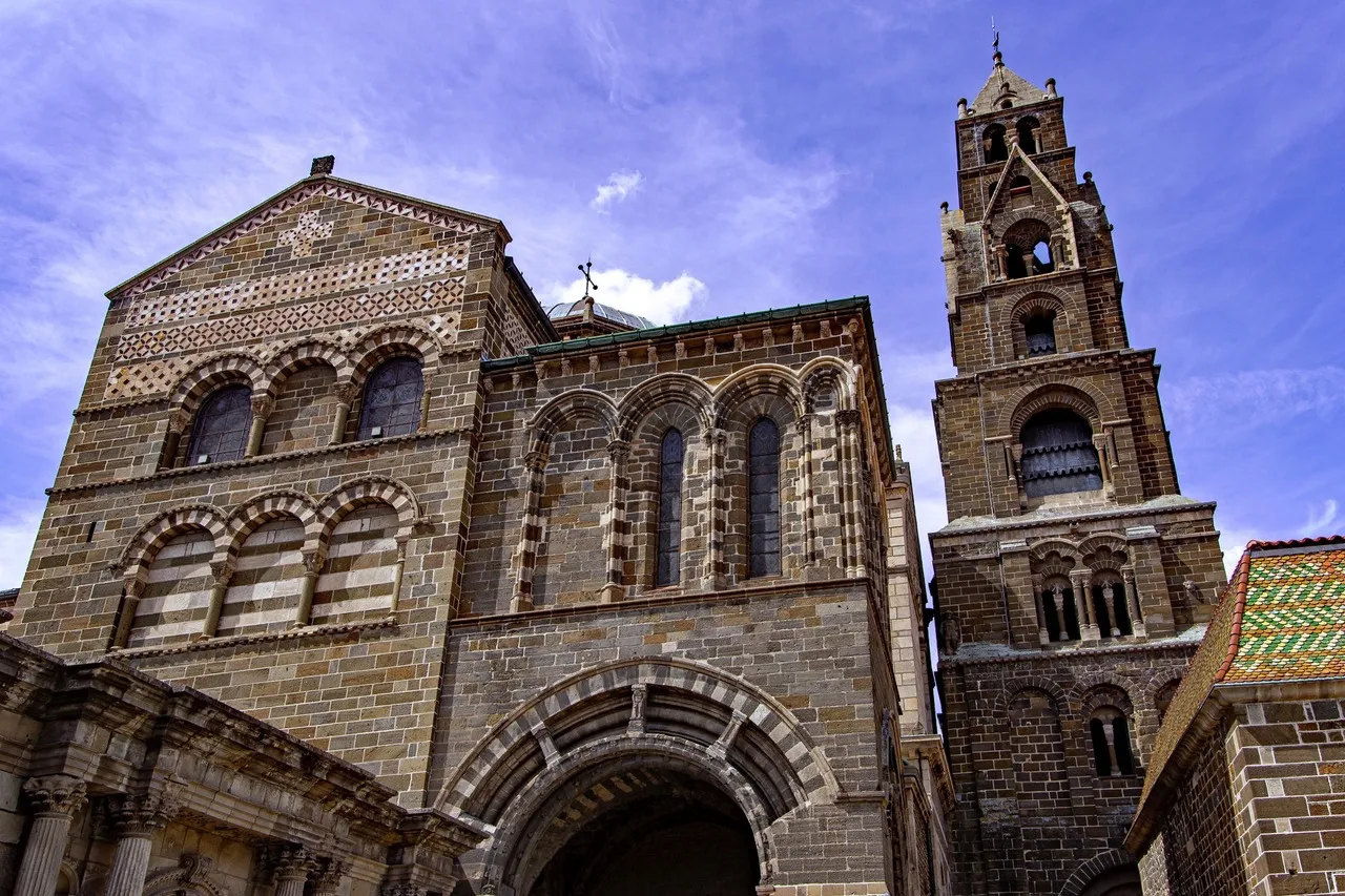 La Cathédrale Notre-Dame-du-Puy est célèbre pour son architecture romane unique, construite au sommet d'un ancien éperon volcanique au Puy-en-Velay. Les amateurs de photographie apprécieront de capturer la façade saisissante de la cathédrale, en particulier le portail complexe orné d'œuvres d'art reflétant diverses influences, notamment byzantine, mauresque et romane. L'intérieur abrite une Vierge noire, pièce maîtresse lors des pèlerinages, offrant un sujet photographique spirituel. La vue panoramique depuis la terrasse de la cathédrale surplombe le paysage urbain distinctif du Puy-en-Velay, un endroit idéal pour capturer des clichés au lever ou au coucher du soleil encadrés par les paysages volcaniques anciens.