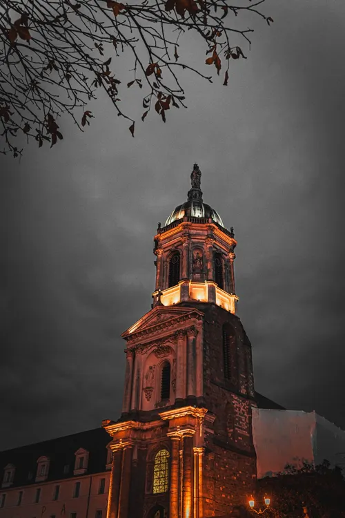 L'église Notre-Dame en Saint-Melaine se dresse gracieusement aux abords du verdoyant Parc du Thabor, mêlant vestiges médiévaux et modifications ultérieures, notamment sa tour surmontée d'une statue dorée de la Vierge Marie. Autrefois partie d'une abbaye dédiée à Saint Melaine, elle conserve des traces des styles roman et gothique, avec d'impressionnants vitraux et de paisibles chapelles. Les jardins environnants offrent un cadre serein pour contempler le riche patrimoine de la ville après avoir exploré le centre animé de Rennes. Les visiteurs peuvent admirer le subtil jeu de lumière sur les sculptures ornées et les œuvres religieuses, évoquant la signification spirituelle durable de l'église.