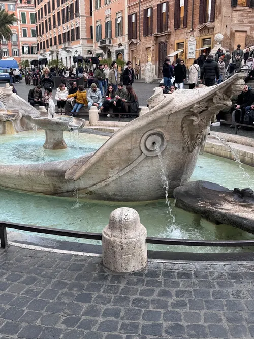 Située au pied de la Place d'Espagne dans la Piazza di Spagna, la Fontana della Barcaccia est une superbe fontaine baroque précoce en forme de bateau à moitié submergé. Attribuée à Pietro Bernini et à son fils Gian Lorenzo Bernini, elle fut commandée par le pape Urbain VIII au début du XVIIe siècle pour commémorer une inondation historique qui avait déposé un bateau échoué à cet endroit. Sa faible hauteur et le doux écoulement de l'eau créent un point focal apaisant au cœur de la place animée. Parfaite pour une photo rapide à côté des célèbres escaliers espagnols, elle est également proche de rues commerçantes élégantes et de cafés charmants. Faites une pause ici pour apprécier l'atmosphère vibrante de Rome et le savoir-faire de l'un de ses monuments les plus appréciés.