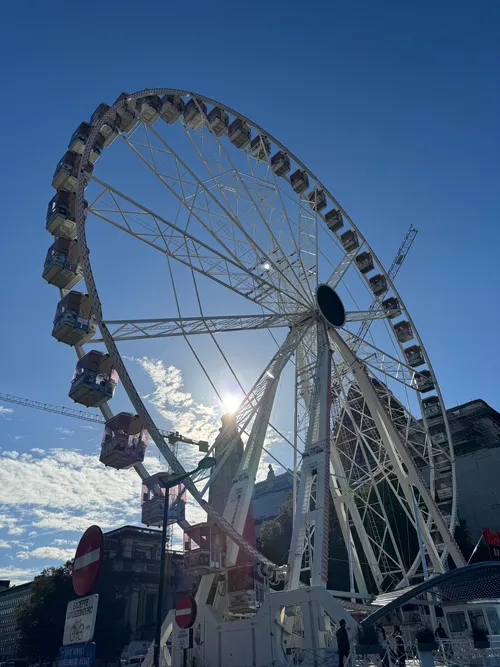 Située près du Palais de Justice, cette grande roue offre une vue panoramique sur la skyline de Bruxelles. Ses cabines spacieuses et fermées permettent d'admirer la ville toute l'année, tandis que son éclairage nocturne crée une scène digne d'une carte postale. À proximité, explorez le quartier chic de Louise ou rejoignez le centre-ville via l'ascenseur reliant la Place Poelaert au quartier animé des Marolles. Les billets coûtent généralement entre 8 et 10 €, avec des réductions pour les enfants. Planifiez votre visite par temps clair pour profiter des meilleurs panoramas et n'oubliez pas de capturer des photos exceptionnelles depuis l'un des points d'observation les plus élevés de Bruxelles.