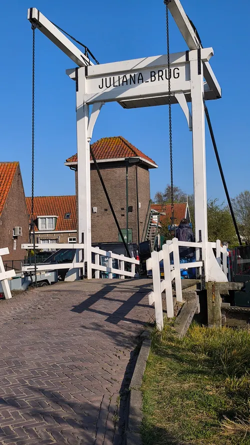Un petit pont-levis pittoresque enjambant un canal dans le village de pêcheurs historique de Marken, Juliana Brug offre un point de vue serein pour observer le passage des bateaux et capturer des photos emblématiques de maisons traditionnelles en bois. Peint en blanc avec des détails simples mais charmants, il est souvent entouré de géraniums colorés pendant les beaux jours. À proximité, de petites boutiques et cafés invitent à déguster des spécialités néerlandaises telles que les poffertjes ou à découvrir l’artisanat local. Promenez-vous dans les étroites ruelles et admirez le reflet de ce charme d’antan sur l’eau. Pour approfondir, le Musée de Marken et le phare emblématique se trouvent à quelques pas ou à vélo, faisant de Juliana Brug une halte agréable sur tout itinéraire à Marken.
