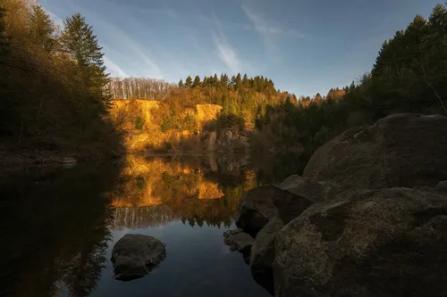 Le Katzenbuckelsee à Waldbrunn, dans le sud-ouest de l'Allemagne, se niche au cœur de l'Odenwald, offrant une retraite paisible entre forêts et collines. Formé au pied du Katzenbuckel, volcan éteint et point culminant régional, le lac attire pour baignade, promenades et pique-niques panoramiques. Des sentiers balisés traversent des bois luxuriants avec des vues imprenables sur l'eau et le paysage volcanique. Les atouts majeurs comprennent des chemins bien indiqués, une promenade confortable au bord du lac et des aires de pique-nique avec commodités, idéal pour couples, familles ou aventuriers solitaires en quête de nature.