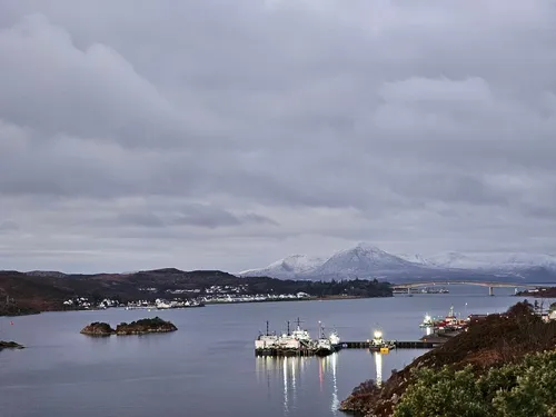 Le belvédère de Loch Alsh offre de superbes vues sur le chenal séparant le continent de l'île de Skye, avec des silhouettes de montagnes dramatiques à l'horizon. À proximité du village animé de Kyle of Lochalsh, c'est une halte idéale pour les photographes et amateurs de nature en quête de panoramas fascinants sur la côte accidentée de l'Écosse. Le site dispose d'un parking spacieux, pratique pour une pause rapide avant de poursuivre votre voyage. Les attractions voisines comprennent le fameux château d'Eilean Donan et le pont de Skye, tous deux facilement accessibles. Arrêtez-vous ici pour profiter de l'air vif des Highlands et capturer l'essence de la beauté naturelle de la région.