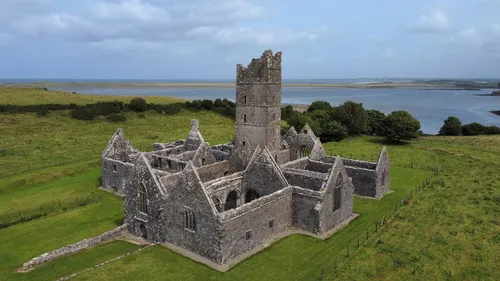 L'abbaye de Moyne, située à Ballintean, dans le comté de Mayo, en Irlande, est un magnifique couvent franciscain construit au milieu du XVe siècle. Pour les amateurs de photographie de voyage, l'abbaye offre une architecture médiévale captivante avec des ruines impressionnantes situées dans des paysages ruraux pittoresques, offrant des occasions uniques de photographie, surtout au lever ou au coucher du soleil lorsque la lumière met en valeur ses murs anciens. Les cloîtres et les hautes arches sont des sujets extraordinaires pour des prises de vue rapprochées, capturant le travail de la pierre avec ses détails complexes. Entourée de champs agricoles, l'abbaye présente les vestiges de son église d'origine, qui comprend une nef et un chœur remarquables. Comme les sentiers peuvent être inégaux, il est recommandé de porter des chaussures solides pour naviguer sur le site en toute confiance.